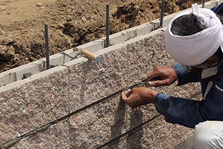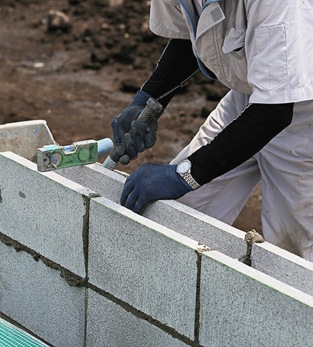 必要な箇所へブロックをモルタルで接着させて積み上げる施工のことです。